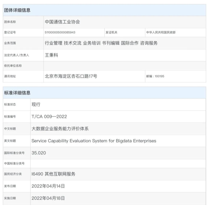 ¡¶´óÊý¾ÝÆóÒµ·þÎñÄÜÁ¦ÆÀ¼Ûϵͳ¡·±ê×¼Ðû²¼